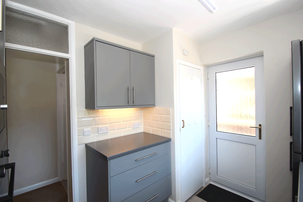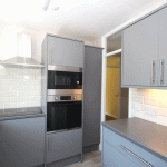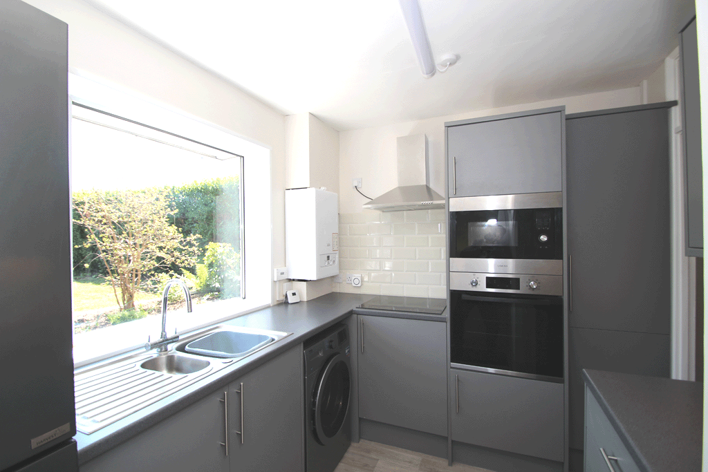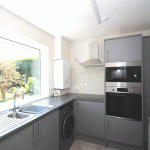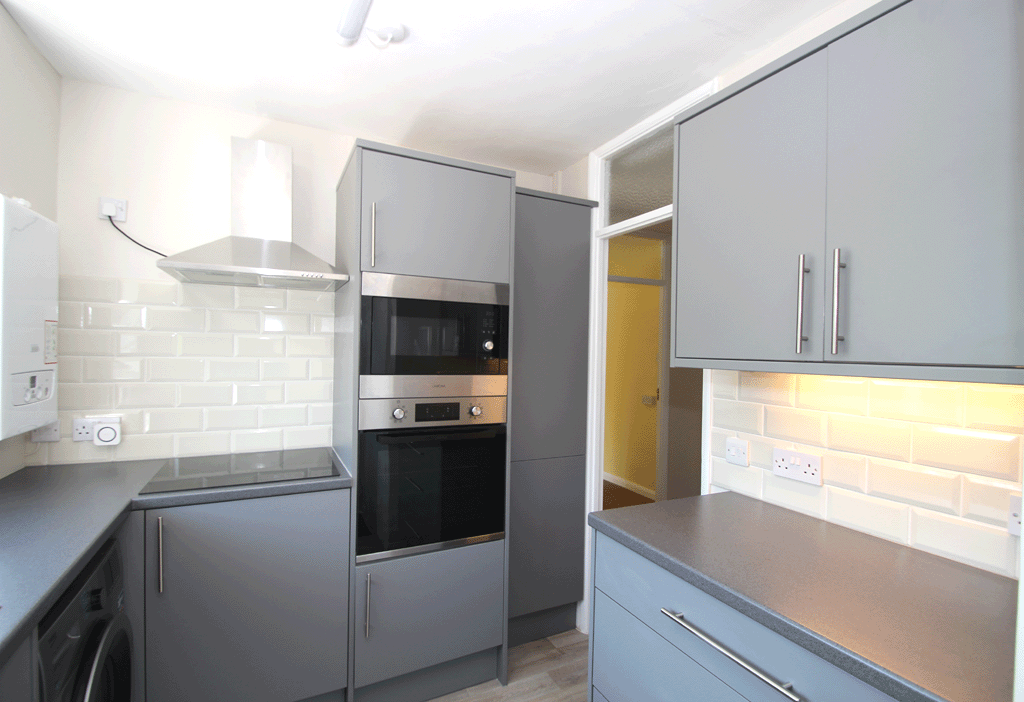 Fitted kitchen with electric induction hob, electric oven, microwave, fridge/freezer* and washing machine* (*White goods left ‘At Risk’)