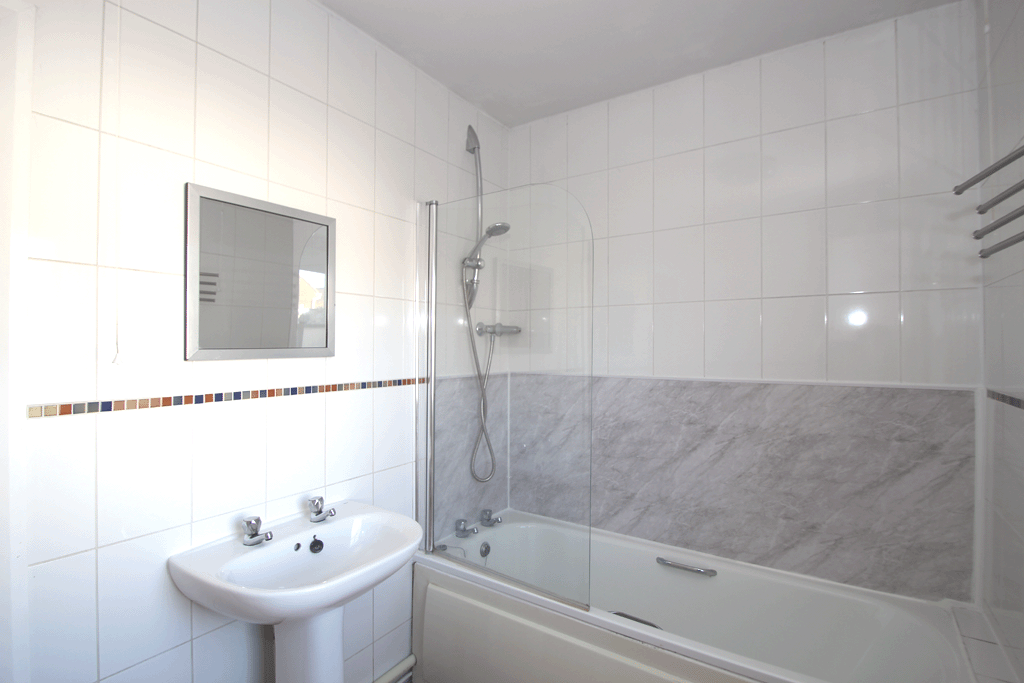 • Ground floor bathroom with white suite and shower over the bath