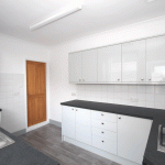 - Newley fitted kitchen, integrated oven and electric hob, with space for white goods
